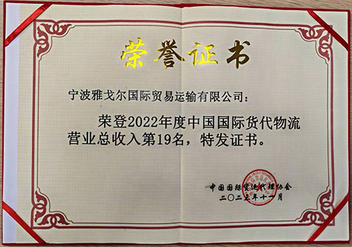 榮登2022年度中國國際貨代物流營(yíng)業(yè)總收入第19名 |