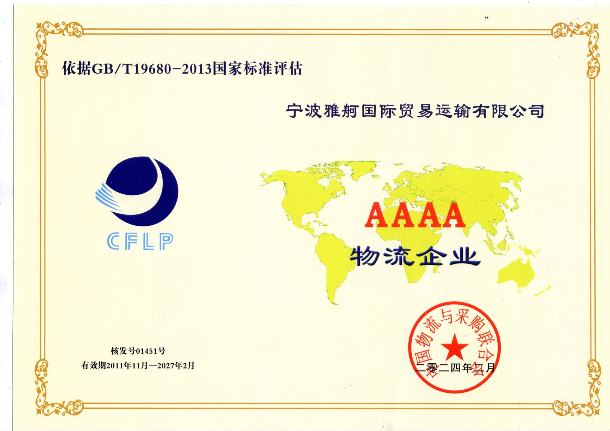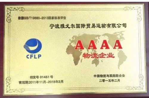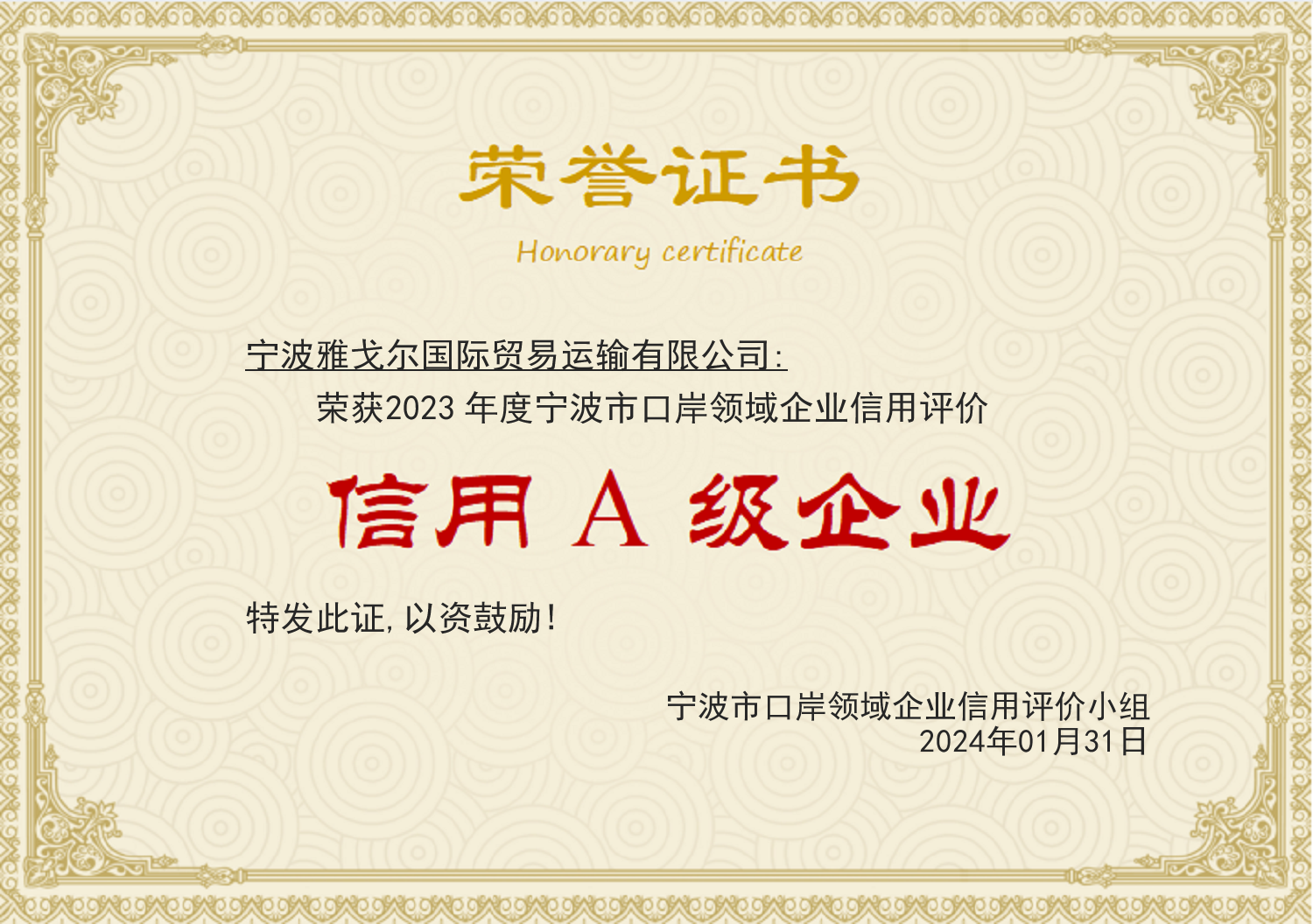 寧波市口岸A級證書(shū) |