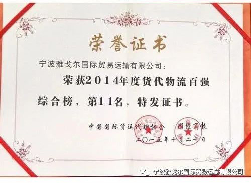 榮獲2014年貨代物流百強綜合榜第11名 |