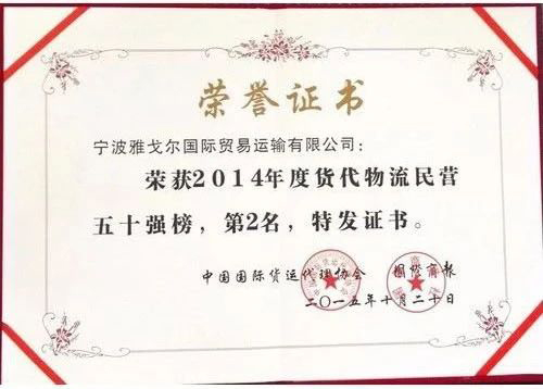 榮獲2014年貨代物流民營(yíng)50強第2名 |