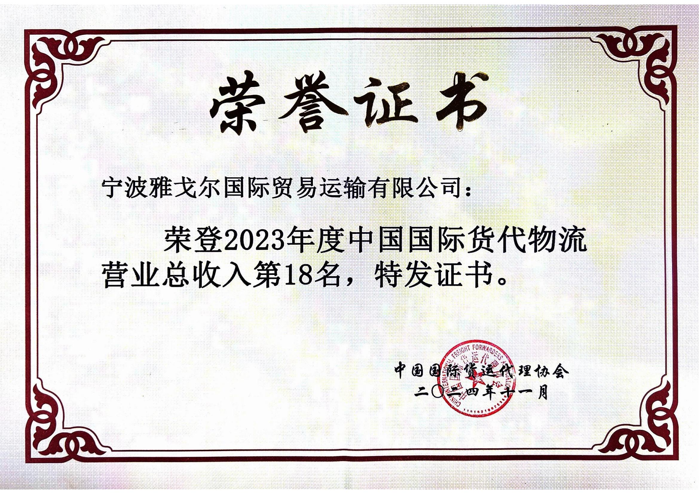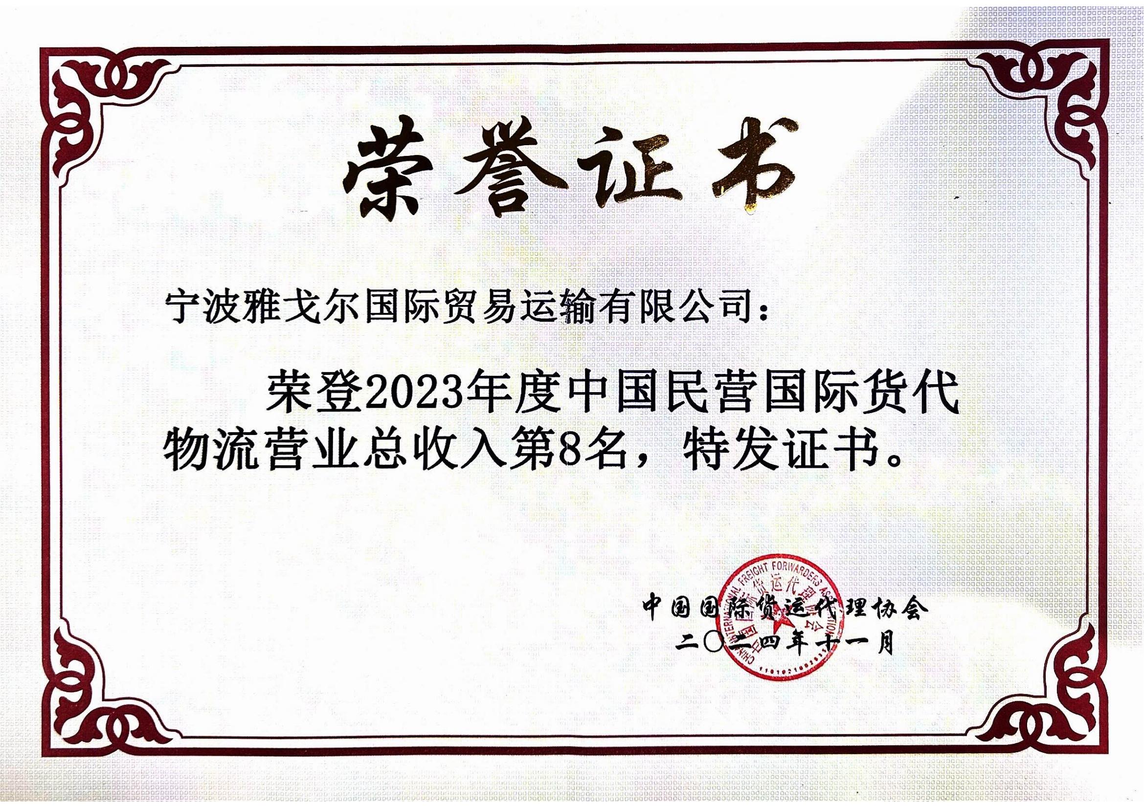 榮登2023年民營(yíng)國際貨代物流營(yíng)業(yè)總收入第8名 |