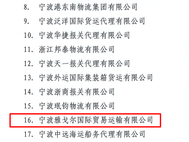 寧波雅戈爾國際貿易運輸有限公司榮登A類(lèi)企業(yè)!