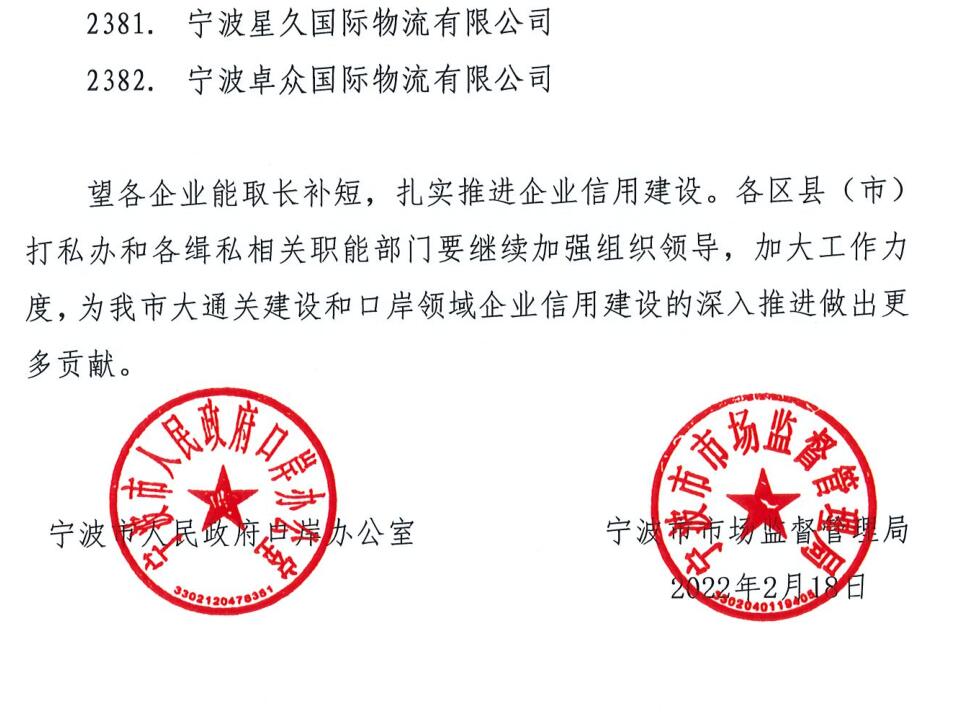 根據《寧波市口岸領(lǐng)域企業(yè)信用評價(jià)活動(dòng)實(shí)施辦法》,2021年度寧波市口岸領(lǐng)域企業(yè)信用評價(jià)活動(dòng)共對全市2382家口岸領(lǐng)域企業(yè)進(jìn)行信用評價(jià),其中寧波雅戈爾國際貿易運輸有限公司榮登A類(lèi)企業(yè)!